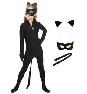 STRÓJ CZARNEGO KOTA W ZESTAWIE Z MASKĄ, OPASKĄ Z USZAMI I OGONEM 140/146 z metki XL STRÓJ PRZEBRANIE KOSTIUM CZARNY KOT Opis produktu: Świetny strój odwzorowany na podobieństwo kultowego bohatera z bajki, Kostium w postaci kombinezonu (zakryte ręce i stopy), Miękka, dopasowana maska na oczy, Opaska z uszami Czarnego Kota, Charakterystyczny pasek noszony przez bohatera w bajce, Ogon z klamerką, który stanowi oddzielny element stroju, w każdej chwili możemy go założyć lub zdjąć, wystarczy przełożyć go przez pas i klamerkę, tak by ogon znajdował się z tyłu, Kombinezon łatwy w ubieraniu, jednoczęściowy, zapinany z przodu na zamek błyskawiczny Rozciągliwy i elastyczny materiał Idealny strój na bal, karnawał, urodziny, do zabawy. Polecamy również jako prezent dla Małych Fanek i Fanów Czarnego Kota : ) Jednoczęściowy kostium Czarnego Kota w kolorze czarnym. Dobrze wykonany, lekko elastyczny, zapinany na zamek błyskawiczny.