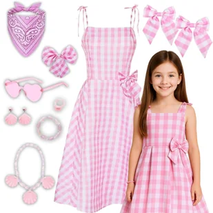 STRÓJ PRZEBRANIE KOSTIUM SUKIENKA BARBI RÓŻOWA NA KARNAWAŁ ZESTAW 116 122