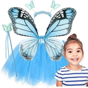 Strój Przebranie Motyl Wiosna Skrzydła Motyla Różdżka Wróżka Niebieski