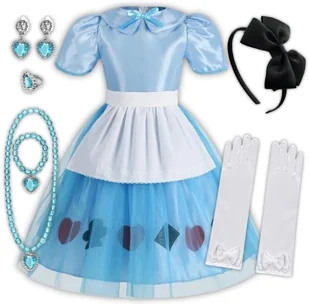 Strój Przebranie Sukienka Alicja W Krainie Czarów Karnawał Bal 140 146 Cm Zestaw