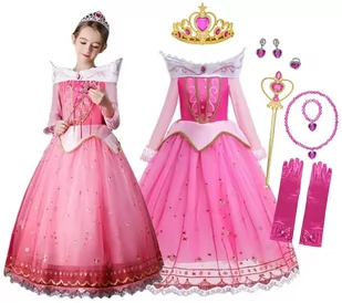 Błąd pomiaru może wynieść +/-2 cm. BIŻUTERIA DLA DZIECI ✨ SPECYFIKACJA DODATKÓW: --------------------------------------------- Berło złote, zdobione różowym kryształem w kształcie płatka serca Korona, zdobiona różowymi kryształkami, złota, mocowana do opaski rozmiar uniwersalny Rękawiczki, wykonane z różowej lycry – rozciągliwy materiał, rozmiar jest uniwersalny - 2 sztuki (para) Naszyjnik z różowymi koralikami i kamieniem Bransoletka, pierścionek oraz kolczyki w kształcie serca SUKIENKA ŚPIĄCA KRÓLEWNA ✨Kostium sukienki Aurora to nie tylko element garderoby dla fanek Śpiącej Królewny, ale również doskonały sposób na wcielenie się w postać ulubionej księżniczki. Ta sukienka zaprasza do podróży w magiczną krainę baśni SUKIENKA AURORA ✨Każdy szczegół tego kostiumu został doskonale uwzględniony, aby zapewnić jak najwierniejsze odwzorowanie postaci księżniczki Aurory. Suknia zamieni każdą Małą Księżniczkę w najjaśniejszą gwiazdę zabawy karnawałowej czy przedstawienia.