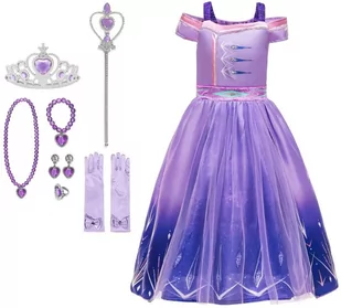 Serdecznie polecamy! SUKIENKA ELSA ✨SPECYFIKACJA SUKIENKI: ******************************************* Rozmiar 128/134 (z metki 130) Długość sukienki - 90 cm Szerokość w pasie (elastyczna gumka na plecach w pasie, wymiar bez rozciągania)- 30 cm x2 Szerokość pod paszkami - 33 cm x2 Wymiary mierzone ręcznie, na płasko. Możliwy błąd pomiaru to +-2 cm. SUKIENKA ELSA KRAINA LODU ✨SPECYFIKACJA ZESTAWU: ******************************************* Berło srebrne, zdobione fioletowym kryształem w kształcie płatka serca Korona, zdobiona fioletowymi kryształkami, srebrna, mocowana do opaski rozmiar uniwersalny Rękawiczki, wykonane z fioletowej lycry – rozciągliwy materiał, rozmiar jest uniwersalny - 2 sztuki (para) Naszyjnik z fioletowymi koralikami i kamieniem Bransoletka, pierścionek kolczyki w kształcie serca Ten siedmioczęściowy zestaw pozwoli poczuć się każdej dziewczynce jak prawdziwa księżniczka z bajki.