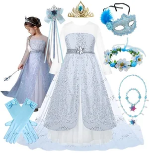 STRÓJ PRZEBRANIE SUKIENKA ELZA ELSA KRAINA LODU TREN NA BAL KARNAWAŁ 92 / 98 CM (Z METKI 110) ZESTAW ❄️Sukienka odwzorowana na podobieństwo sukni kultowej bo...
