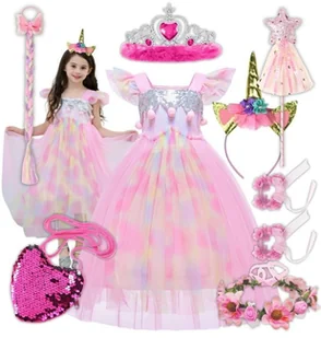 Strój Przebranie Sukienka Tęczowy Jednorożec Kostium Na Karnawał 140 146