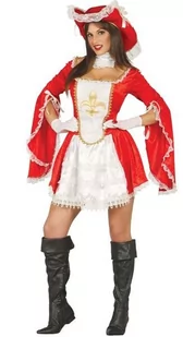 STRÓJ SEXY PANI MUSZKIETER; W zestawie znajduje się: - sukienka - kołnierz - kapelusz. Sukienka w kolorze czerwonym z rozszerzanymi rękawami i wiązaniem z tyłu. Kapelusz czerwony z białą koronką. Kołnierz biały z koronką.
