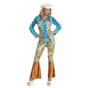 Zestaw zawiera: koszulę, spodnie, czapkę. Koszula błękitna z długim rękawem, wywijanym kołnierzem oraz wszytą kamizelką w kolorowe kwiaty. Spodnie rozszerzan...
