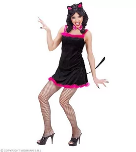 STRÓJ SUKIENKA KOTEK; W komplecie znajduje się: - sukienka na ramiączkach, - opaska z uszkami, - atłasowa mucha. Kolor: czarno- różowy.