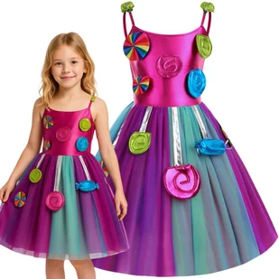 Strój Sukienka Tęczowa Wróżka Cukierkowa Księżniczka Lollipop Bal 116 122