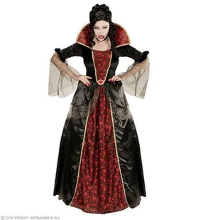 Suknia z pokaźnym kołnierzem. Rękawki długości 3/4, z dołączoną tiulową falbanką. Góra sukienki wykonana z bogato zdobionego materiału. Talia ozdobiona krysz...