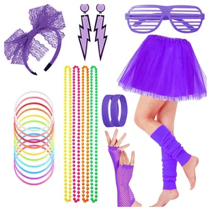 Neonowy zestaw na imprezę w stylu lat 80.! Zestaw akcesoriów retro w stylu lat 80. to kompletny pakiet, który doda Twojej stylizacji niezapomnianego charakte...