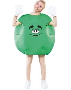 W komplecie znajdują się: - strój w kształcie okrągłego cukierka, - rękawice, -nakładki na buty. Kolor: zielony. Strój wykonany z poliestru. Strój wysokiej j...