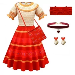 Rozmiar: uniwersalny dla dziecka. Wymiary: 17,5cm x 9,5cm. Kostium idealny dla małych dziewczynek, a zwłaszcza dla wielbicieli bajki Nasze magiczne Encanto, dobrze wykonany w odcieniach koloru pomarańczowego i czerwonego. Dzieci zakładając strój bohaterki z bajki mogą poczuć się jak ulubiona postać. Kostium gwarantuje fantastyczną zabawę i rozwija wyobraźnię dziecka.