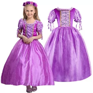 KOSTIUM STRÓJ PRZEBRANIE SUKIENKA ROSZPUNKA OFERTA DOTYCZY SKIENKI ROSZPUNKI W ROZMIARZE 146/152 cm (na metce 140) Opis produktu: Śliczny, bardzo dobrze wykonany strój odwzorowany na podobieństwo księżniczki Roszpunki, Kostium uszyty z błyszczących, atłasowych materiałów, Sukienka w odcieniach koloru różowego i fioletowego, Całość dopełniają złote akcenty, Gorset został ślicznie ozdobiony brokatową wstążką oraz cyrkoniami, Sukienka na bawełnianej podszewce, składająca się z 1 warstwy atłasowej halki oraz 1 warstwy tiulu, Sukienka z uroczymi, bufiastymi, krótkimi rękawkami, zakończonymi wstążkami, Długość sukienki 3/4. Idealna sukienka, strój na bal, karnawał, urodziny, do codziennej zabawy. Polecamy również jako prezent dla Małych Fanek księżniczki Roszpunki : ) Serdecznie polecamy! Idealna dla małych dziewczynek, a zwłaszcza dla wielbicielek księżniczki Roszpunki, dobrze wykonana w odcieniach różu i fioletu.