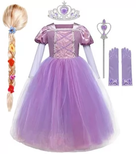 NOWY WZÓR PRZEŚLICZNEJ SUKIENKI ROSZPUNKI : ) OFERTA DOTYCZY SUKIENKI ROSZPUNKI W ROZMIARZE 140/146 cm (na metce 140) KOSTIUM STRÓJ PRZEBRANIE SUKIENKA ROSZPUNKA+ZESTAW DODATKÓW: Śliczny, bardzo dobrze wykonany strój odwzorowany na podobieństwo księżniczki Roszpunki, Kostium uszyty z błyszczących, atłasowych materiałów, Sukienka w odcieniach koloru różowego i fioletowego, Gorset został ślicznie ozdobiony wstążką, Sukienka na bawełnianej podszewce, składająca się z 1 warstwy atłasowej halki oraz 2 warstw tiulu, Sukienka z bufiastymi rękawkami, wykończonymi białym dłuższym materiałem, Długość sukienki 3/4, W zestawie z sukienką dołączone jest berło, rękawiczki, korona i peruka. Idealna sukienka, strój na bal, karnawał, urodziny, do codziennej zabawy. Polecamy również jako prezent dla Małych Fanek księżniczki Roszpunki :