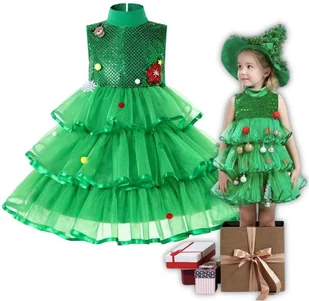 Sukienka Świąteczna Strój Zielona Choinka Przebranie Na Święta Bal 104 110 Cm
