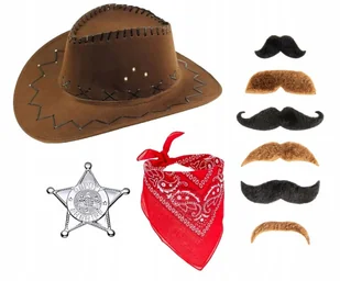 ZESTAW KOWBOJA SZERYFA PRZEBRANIE KAPELUSZ GWIAZDA BANDANA WĄSY ZESTAW