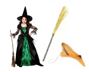 Zestaw Strój Czarownica 98/104 plus Miotła Srebrna Nos 3el MK394