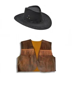 Zestaw Strój Kowboja Kamizelka Szeryfa Kapelusz Czarny 2el dla dorosłych MK471