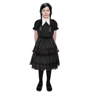 Kostium Wednesday Sukienka Warkocze Strój Mroczna Lalka Czarny Bal 134-140