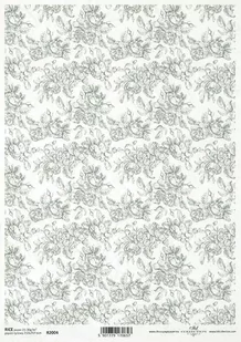 Papier decoupage ryżowy rozmiar A4 - 210x297 mm gramatura 30-35 g/m2 Doskonały papier, bardzo cienki (30g) i jednocześnie wytrzymały. Piękne barwy, świetne wzory. Papier, który cechuje wyjątkowa wytrzymałość i łatwość "naddawania" na obłych przedmiotach. Ma w sobie wyraźnie widoczne, duże, charakterystyczne włókna. Włókna te są bardzo dekoracyjne a całość struktury tego papieru powoduje, że motywy z niego "wydarte" łatwo wkomponowują się w tło ozdabianego przedmiotu.
