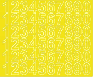 Cyfry samoprzylepne 3 cm żółty z połyskiem Prezentowane w naszym sklepie cyfry samoprzylepne na arkuszu 21x25 cm w kolorze żółtym z połyskiem i rozmiarze 3 cm pozwalają łatwo określić dowolny produkt. Zestawy są oferowane w rozmiarze 21X25 cm. Naklejone na folie samoprzylepną oracal 641. Ten typ folii sygnowany jest przez niemieckiego producenta Orafol. Folia jest znana ze swoich właściwości.