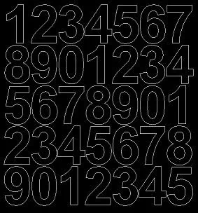 Cyfry wycinane ploterowo po obrysie (bez tła). Ilość cyfr jak na zdjęciu głównym. kolor czarny z połyskiem rozmiar arkusza 21x25 cm wysokość znaku 4 cm trwałość 3-4 lata grubość folii 70 mikronów rodzaj folii Oracal 641