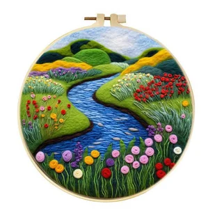 Zestaw do haftowania (filcowania) wełną czesankową - DOLINA KWIATÓW Zestaw DIY do samodzielnego wykonania FILCOWANIE IGŁĄ - to oryginalne hobby, które pozwal...