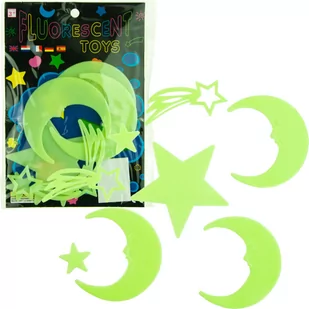 - Zestaw fluorescencyjnych gwiazdek, które pochłaniają światło emitowane przez słońce lub światło sztuczne, a dzięki temu świecą w ciemnościach.