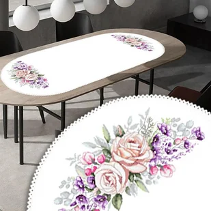 Zestaw do haftu - Bieżnik owalny z pudrowymi różami Zestaw do haftu zawiera: bieżnik owalny Aida z koronką 50x110 cm, 14ct (gęstość 54 oczek/10 cm), 100% baw...