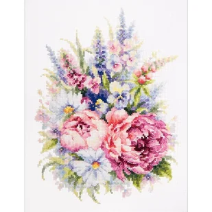 Zestaw do haftu - Bukiet z piwoniami Zestaw do haftu zawiera: kanwę czystą typu Aida ZWEIGART (100% bawełna) o gęstości 54 oczek/10 cm (14ct), mulinę Gamma, ...