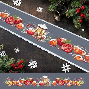 Zestaw do haftu - Długi bieżnik z miechunkami Zestaw do haftu zawiera: bieżnik Aida z koronką 117x21 cm, 14ct (gęstość 54 oczek/10 cm), 100% bawełna, mulinę, igłę oraz kolorowy wzór graficzny. Rozmiar w krzyżykach: 631 x 113 Rozmiar w cm: 117 x 21 Rozmiar w calach: