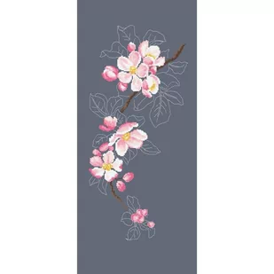 Zestaw do haftu - Gałązka kwitnącej jabłoni Zestaw do haftu zawiera: kanwę czystą typu Aida (100% bawełna) o gęstości 54 oczek/10 cm (14ct), mulinę, igłę oraz kolorowy wzór graficzny (zestaw nie zawiera ramek). Rozmiar w krzyżykach: 131 x 300 Rozmiar w cm: 24 x 56 Rozmiar w calach: