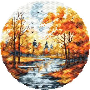 Zestaw do haftu - Jesienny pejzaż Zestaw do haftu zawiera: kanwę czystą typu Aida (100% bawełna) o gęstości 54 oczek/10 cm (14ct), mulinę, igłę oraz kolorowy...