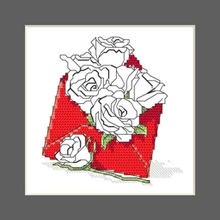 Zestaw do haftu - Kartka - Koperta pełna róż Zestaw do haftu zawiera: kanwę czystą typu Aida (100% bawełna) o gęstości 54 oczka/10 cm (14ct), mulinę, igłę, kolorowy wzór graficzny oraz kartę z kwadratowym passe-partout. Rozmiar w krzyżykach: 65 x 65 Rozmiar w cm: 16 x 16 Rozmiar w calach: