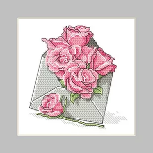 Zestaw do haftu - Kartka - Koperta z różami Zestaw do haftu zawiera: kanwę czystą typu Aida (100% bawełna) o gęstości 54 oczka/10 cm (14ct), mulinę, igłę, kolorowy wzór graficzny oraz kartę z kwadratowym passe-partout. Rozmiar w krzyżykach: 65 x 65 Rozmiar w cm: 16 x 16 Rozmiar w calach: