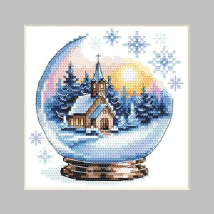 Haft krzyżykowy - Zestaw do haftu - Kartka świąteczna - Kula z kościółkiem