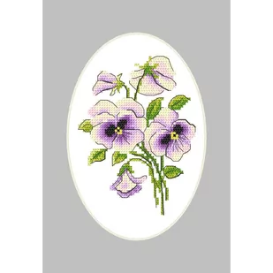 Zestaw do haftu - Kartka z bratkami Zestaw do haftu zawiera: kanwę czystą typu Aida (100% bawełna) o gęstości 54 oczka/10 cm (14ct), mulinę, igłę, kolorowy wzór graficzny oraz kartę z prostokątnym passe-partout. Oprócz wzoru wydrukowanego na papierze, w zestawie znajduje się link w postaci kodu QR do pobrania wzoru na telefon lub tablet z systemem Android. Aby otworzyć wzór konieczne jest zainstalowanie aplikacji Coricamo Cross Stitch ze sklepu Google Play. Rozmiar w krzyżykach: