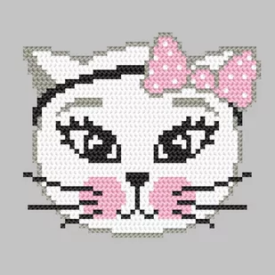 Zestaw do haftu - Kotka psotka Zestaw z muliną zawiera: kanwę czystą typu Aida (100% bawełna) o gęstości 54 oczek/10 cm (14ct), mulinę, igłę oraz kolorowy wzór graficzny. Zestaw nie zawiera ramki. Rozmiar w krzyżykach: 59 x 59 Rozmiar w cm: