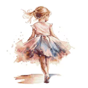 Zestaw do haftu - Mała baletnica III Zestaw do haftu zawiera: kanwę czystą typu Aida (100% bawełna) o gęstości 54 oczek/10 cm (14ct), mulinę, igłę oraz kolorowy wzór graficzny. Zestaw nie zawiera ramki. Rozmiar w krzyżykach: 162 x 162 Rozmiar w cm: