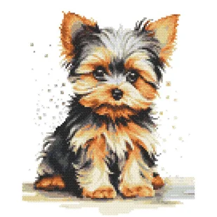 Zestaw do haftu - Mały york Zestaw do haftu zawiera: kanwę czystą typu Aida (100% bawełna) o gęstości 54 oczek/10 cm (14ct), mulinę, igłę oraz kolorowy wzór ...