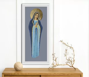 Zestaw do haftu - Matka Boska Zestaw do haftu zawiera: kanwę czystą typu Aida (100% bawełna) o gęstości 54 oczek/10 cm (14ct), mulinę, igłę oraz kolorowy wzór graficzny. Zestaw nie zawiera ramki. Rozmiar w krzyżykach: 162 x 400 Rozmiar w cm:
