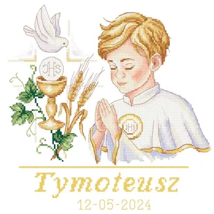 Haft krzyżykowy - Zestaw do haftu - Pamiątka Komunii - Chłopczyk