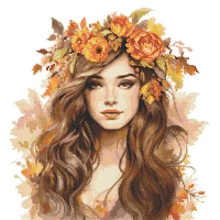 Zestaw do haftu - Pani Jesień Zestaw do haftu zawiera: kanwę czystą typu Aida (100% bawełna) o gęstości 54 oczek/10 cm (14ct), mulinę, igłę oraz kolorowy wzór graficzny. Zestaw nie zawiera ramki. Rozmiar w krzyżykach: 200 x 200 Rozmiar w cm: