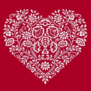 Haft Krzyżykowy - Zestaw Do Haftu - Serce - Biały Haft