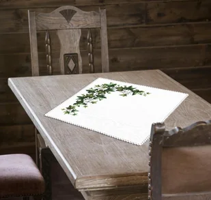 Zestaw do haftu - Serwetka z bluszczem Zestaw do haftu zawiera: serwetkę Aida z koronką (100% bawełna) o rozmiarze 45x45 cm, (gęstość 54 oczek/10 cm - 14ct),...