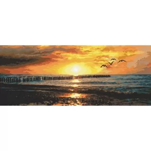 Zestaw do haftu - Tęsknota za morzem Zestaw z muliną zawiera: kanwę czystą typu Aida (100% bawełna) o gęstości 54 oczek/10 cm (14ct), mulinę, igłę oraz kolorowy wzór graficzny. Zestaw nie zawiera ramki. Rozmiar w krzyżykach: 270 x 108 Rozmiar w cm: