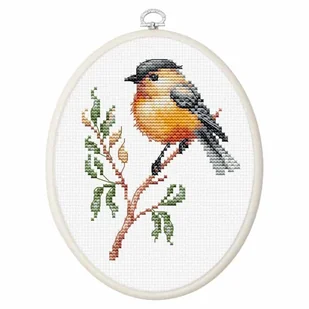 Haft krzyżykowy - Zestaw do haftu z tamborkiem - LUCA-S - Ptaszek na gałęzi