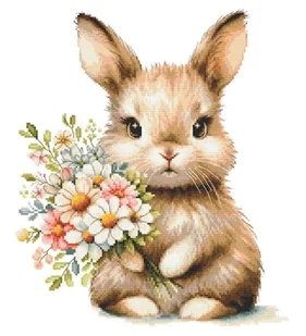 Zestaw do haftu - Zajączek z kwiatami Zestaw do haftu zawiera: kanwę czystą typu Aida (100% bawełna) o gęstości 54 oczka/10 cm (14ct), mulinę Ariadna, igłę o...