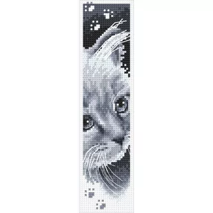 Zestaw do haftu - Zakładka z kotkiem Zestaw do haftu zawiera: kanwę plastikową o gęstości 54 oczka/10 cm (14ct), mulinę, igłę i kolorowy wzory graficzny. Tył zakładki należy zakleić tekturką. Tekturka nie jest dołączona do zestawu. Rozmiar w krzyżykach: