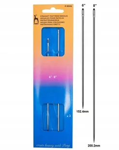 Zestaw zawierający 2 sztuki igieł prostych do materacy o długości 15 i 20 cm. Duże, proste igły przeznaczone do naprawy materacy, tapicerki, pikowania. Ostre...
